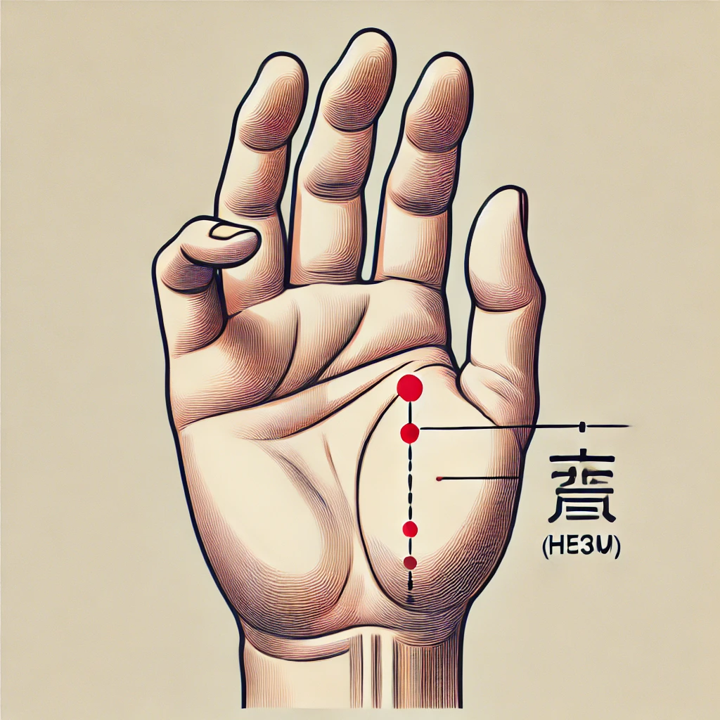 • 합곡혈 위치: 엄지와 검지가 만나는 지점에서 약간 아래쪽, 움푹 들어간 곳을 손가락으로 눌러줍니다. 이 부위를 3~5분간 강하게 눌러줍니다.